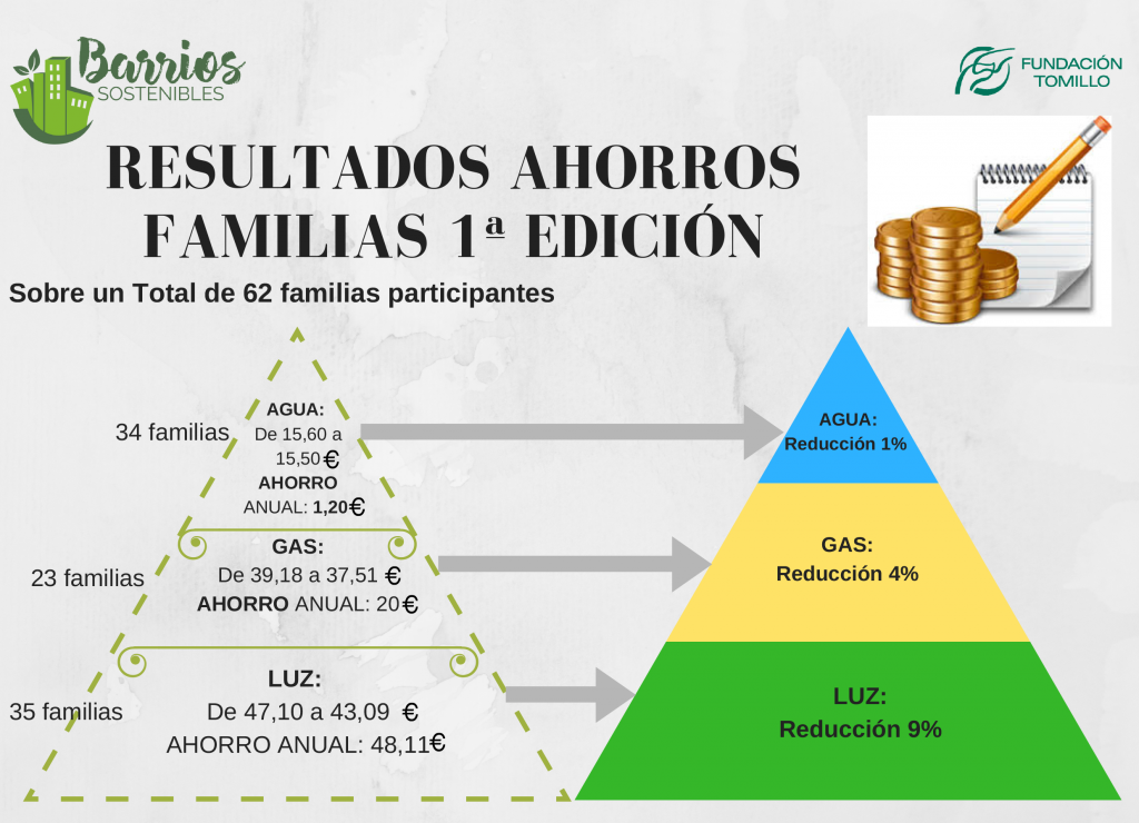 Los hogares participantes a los que se les ha medido su ahorro han sido aquellos que comenzaron en el curso 2015-16. Se ha analizado qué repercusión han tenido las acciones de los estudiantes en las viviendas sobre las facturas de electricidad, gas y agua que dichos hogares afrontan mensualmente.